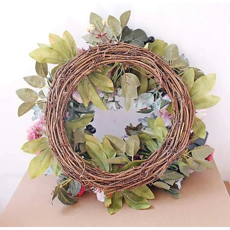 Couronne artificielle : Les fleurs sont en tissu de soie, l’anneau de la couronne est en anneau de rotin naturel, la lumière et ne se décolore pas facilement et a un texture réaliste.