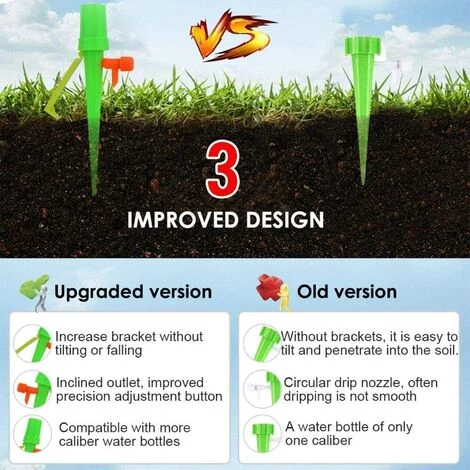 [PROFITEZ DE VOS VACANCES] – Profitez du temps en famille, vos plantes me quittent. Utilisez des pics à arrosage automatique, vous pouvez aller vous détendre sans avoir à vous soucier de vos plantes. Notre système d’arrosage automatique idéal pour arroser les fleurs d’intérieur, les plantes d’extérieur ou vos légumes pendant les vacances [DÉBIT D’EAU RÉGLABLE] – Interrupteur réglable, contrôle précis du débit. Ces dispositifs d’arrosage des plantes avec vanne de contrôle peuvent contrôler la vitesse d’égouttement de 0 à 60 s/1 goutte à goutte, les gouttes à libération lente vers les stations d’arrosage automatique, durent 1 à 15 jours ou plus, selon le temps dont vous avez besoin. Quantité exacte d’eau, ne devenez pas un tueur de plantes [FACILE À UTILISER] – Sans installation fastidieuse, percez simplement un petit trou dans le fond de la bouteille pour permettre au gaz de s’échapper et de resserrer les arroseurs pour l’irrigation goutte à goutte, puis une vanne de régulation pour régler la vitesse du flux. Insérez-le dans le sol, aucun clou nécessaire et aucun danger [FLACONS COMPATIBLES] – Les globes d’arrosage des plantes sont compatibles avec les bouteilles de 1,1 pouce à l’intérieur. Convient à la plupart des bouteilles de marque : Dr.pepper, Pepsi, Coca-Cola, Lipton, Deet Coke, Aqufina ou d’autres bouteilles avec un bouchon de 1,1 pouce de diamètre intérieur [SPIKES D’ARROSAGE AUTOMATIQUE] – Dispositif d’arrosage parfait pour votre Légumes, jardin extérieur intérieur, plantes aquatiques quotidiennes, plantes en pot, plantes d’intérieur, herbes, plantes de terrasse, paniers suspendus, pots de bureau, plantes suspendues, petits arbres, arbustes. Il peut économiser votre temps et votre énergie sans avoir à arroser chaque journée, et vous évite d’avoir à transporter de lourds arrosoirs