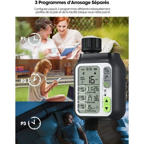 Ensuite, Programmateur d’Arrosage avec 3 programmes d’arrosage séparés sera votre assistant fiable dans le jardin