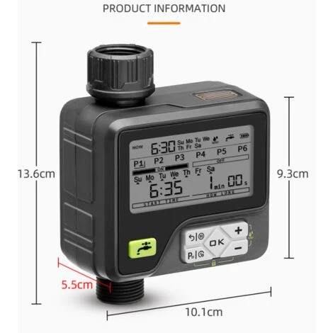 【Faible consommation d’énergie】 : Doit utiliser 2 piles alcalines AA de 1,5 V (non incluses), ce qui permet à la minuterie de fonctionner pendant plus de 6 mois. Si la minuterie du tuyau d’arrosage n’est pas utilisée dans les 30 secondes, l’écran se mettra automatiquement en veille pour économiser la batterie. alimentation, et s’éteint également automatiquement lorsque la puce puissante détecte une faible puissance avant que la batterie ne soit épuisée, en particulier l’indicateur de batterie peut La puissance restante de la batterie s’affiche pour vous rappeler de remplacer la batterie à temps.