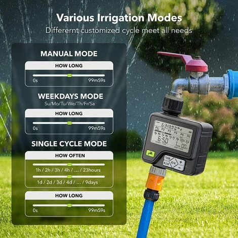 【6 modes d’irrigation indépendants】 : la minuterie d’arrosage fournit 6 programmes d’irrigation indépendants pour répondre à vos différents besoins
