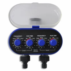 Dotée d’un système d’arrosage automatique, cette minuterie d’arrosage automatique de jardin est conçu pour économiser l’eau et le temps. Elle contient deux ensembles de boutons de commande d’arrosage, vous permettant d’arroser deux secteurs de jardin en même temps. Chacun peut être facilement installé avec deux molettes : une pour le temps de cycle et l’autre pour le temps d’arrosage.