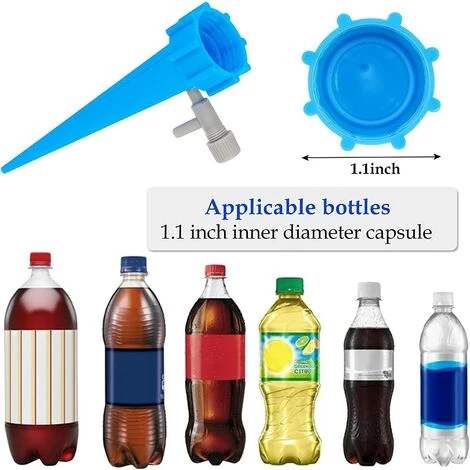 4. Ces pointes d’arrosage automatique s’adaptent aux bouteilles avec une capsule de diamètre intérieur de 1,1 pouce, qui sont faciles à trouver.Spécification : Couleur : bleu + vert Matériel : ABS Quantité : 30 pièces