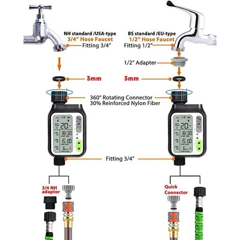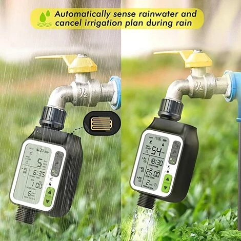 [3 programmes d’irrigation individuels] Le programme d’irrigation peut être adapté de manière flexible à vos différents besoins. Le temps d’arrosage pour chaque groupe est de 1 minute à 99 minutes 59 secondes, l’intervalle d’arrosage est de 1 heure à 15 jours. Vous pouvez régler les ensembles P1 / P2 / P3 à partir des programmes de chronométrage selon vos besoins [Capteur de pluie automatique] La puce du capteur de pluie détecte automatiquement quand il pleut. Kazeila utilise la dernière technologie de capteur de pluie. Le module de capteur très sensible surveille les précipitations en temps réel et réagit ensuite en interrompant la vanne. Si le capteur de pluie sèche, la minuterie redémarre comme prévu [Grand écran] 3,5 grand écran HD, montre tous les détails en un coup d’œil. Opération simple et pratique [Arrosage manuel et verrouillage enfant] Le mode manuel peut être utilisé pour un arrosage immédiat sans interrompre le programme d’arrosage programmé. Le mode de verrouillage enfant aide la minuterie de l’arroseur à éviter tout déclenchement accidentel ou le gaspillage d’eau [Imperméable et durable] IPX5 étanche. Le connecteur supérieur est fait de fibre de nylon renforcée, ce qui le rend beaucoup plus durable et solide que l’ABS ou le plastique