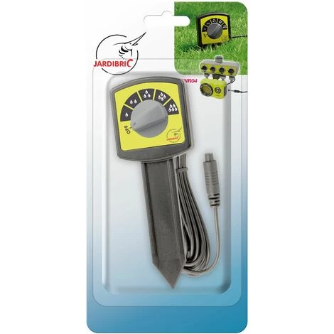 Sonde capteur d’humidité se branche exclusivement sur le programmateur nez de robinet 4 voies digital PNR04permet d’arrêter la programmation en cas de pluie, elle se pique dans la terre.cette sonde est uniquement pour Jardibric – Programmateur d’arrosage 4 Sorties – digital