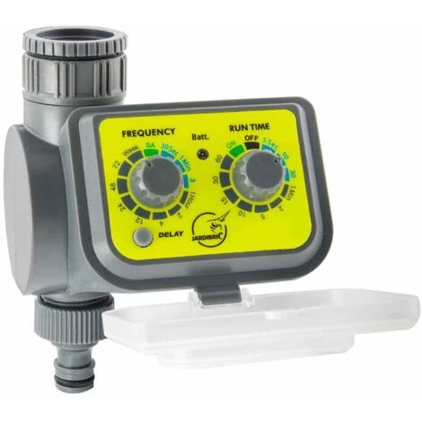 Programmateur d’arrosage électronique adaptable sur nez de robinet, très simple d’utilisation. 1 entrée d’eau 1 sortie programmée pour un arrosage facile à adapter à votre potager, vos fleurs ou jardin. Ce programmateur est utilisable également pour un goutte à goutte. Vendu sans robinet.