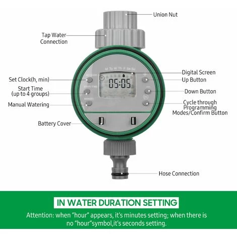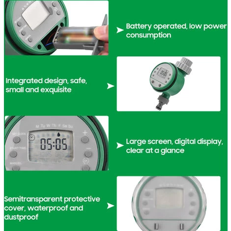 Le contrôleur intelligent d’irrigation de l’eau rend l’irrigation plus facile, plus pratique et plus efficace. La conception à piles et l’écran d’affichage numérique le rendent facile à utiliser. Il convient à l’arrosage des plantes, à l’irrigation agricole, à l’humidification des serres, au dépoussiérage, au refroidissement de la cour et plus encore !