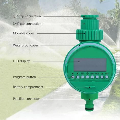 La minuterie d’eau est fabriquée à partir de plastique ABS durable. Et avec fonction de mémoire permanente, pas besoin de réinitialiser le programme. Cette minuterie électronique est conçue pour le contrôle des arroseurs et des systèmes d’eau / d’irrigation.