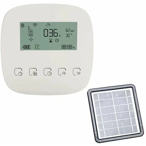 - Il s’agit d’une sorte de contr?leur d’irrigation intelligent de qualité, de contr?les précis, d’économie d’énergie et à faible consommation d’énergie. Grand écran LED, affichage clair des données, réglage facile et irrigation pratique. Mode programmable hebdomadaire 5+1+1?: prend en charge le réglage de 4 périodes et définit le temps d’exécution pour chaque période pour un contr?le flexible de la minuterie. Conception à double alimentation USB et panneau solaire, n’a pas besoin de recharger la minuterie d’arrosage à plusieurs reprises ou de changer fréquemment la batterie. Prend en charge les commandes de l’application Tuya du smartphone, prend en charge le contr?le à distance de la minuterie via l’application lorsque vous n’êtes pas à la maison. Compatible avec Amazon Alexa et Google Assistant pour obtenir un contr?le vocal.
