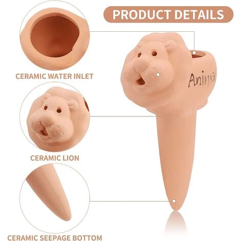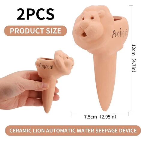 MEZHENG Arrosage Automatique Pour Plantes, 2 Pieces Dispositif D’arrosage Automatique En Céramique Arrosage Ampoules Distributeur D’eau Pour Plantes Pour Les Plantes D’intérieur Et D’extérieur Lion