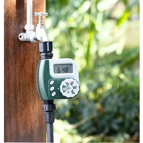 FACILE À INSTALLER : aucun outil requis, il suffit de monter la minuterie sur le robinet/robinet et de fixer la fixation du tuyau au connecteur mâle encliquetable pour une connexion directe à un robinet fileté G3/4. (Remarque : les raccords de robinet ne sont pas inclus).