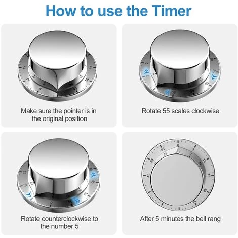 Minuteur de cuisine mécanique : fabriqué en acier inoxydable de haute qualité et matériaux ABS. Le noyau interne mécanique est à remontage manuel, ne nécessite pas de piles, est résistant à l’eau, peut être réutilisé pendant longtemps, est écologique et abordable.
