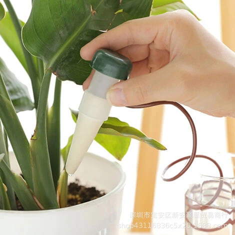 Matriel: PP et cramique 100% de haute qualit, sr et respectueux de lenvironnement, une fabrication exquise peut tre rutilise. Conception: La buse de linjecteur deau est en cramique et le tuyau en PE rouge fonc mesure environ 70 cm de long. La conception avance est pratique et pratique pour rsoudre les problmes de diffrentes longueurs darrosage. Le principe du siphon absorbe automatiquement leau et pntre lentement travers la tte en cramique dans le fond du pot de fleurs. Caractristiques: Le systme darrosage des plantes convient larrosage des fleurs, des cages suspendues, des plantes en pot et dautres lgumes et plantes lintrieur et lextrieur. Il nest pas ncessaire darroser intentionnellement les plantes tous les jours, ce qui peut vous viter doublier darroser ou de les laisser sans surveillance. Fonction: Le distributeur deau de la plante peut ajuster le dbit deau correct en fonction de sa propre consommation deau, et le goutte–goutte lent transporte leau directement la racine de la plante. Cest un choix idal pour les voyages daffaires court terme ou les vacances afin dviter les problmes de plantes mortes.