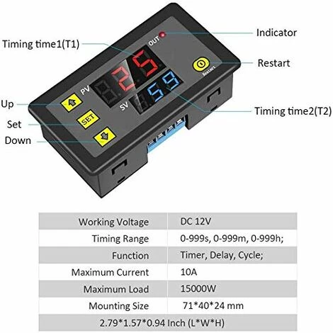 Module de commutation de délai de temporisation de relais numérique programmable DC 12V 20A