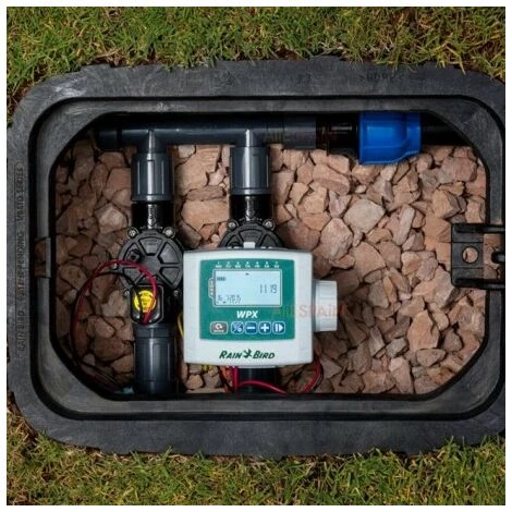 Irrigation Scheduler WPX2 * WPX2, wp2x, WPX, WPX programmeur, wpx2, un controleur d’irrigation de la batterie, le controleur d’irrigation, la batterie du programmateur, le systeme d’irrigation, le temporisateur d’irrigation, le controleur d’irrigation, Rain Bird. Plus facile a programmer Vous pouvez acceder a plus utilisees couramment la programmation a partir du meme ecran, ce qui rend la programmation plus facile et plus rapide. Installe partout. Le WPX de Aliespain peut etre installe pratiquement partout. Boîtier etanche garantit une longue duree de vie, meme lorsqu’il est installe dans un cercueil enterre. long peut fonctionner pendant environ un an avec une pile alcaline 9 volts ou pendant deux ans avec deux piles alcalines 9 volts. Caracteristiques programmeur • Temps de fonctionnement, les heures de debut et les jours d’arrosage chaque zone sont affichees sur un seul ecran. • Grand ecran LCD avec une interface utilisateur facile a naviguer. • entree capteur meteo avec fonction de desactivation. • vanne marche / maître pompe de circuit. (Seulement en unites multizones). • Memoire de programme non volatile (100 ans). • Protection IP68 contre la poussiere et l’eau. • Le boîtier en plastique a Programmeur une resistance exceptionnelle aux intemperies, au jaunissement et le vieillissement. Fonctions de programmation • l’arrosage manuel bouton exclusif pour la facilite d’utilisation. • Les zones d’empilement automatique assure plus d’une vanne en meme temps d’arrosage . Si plusieurs zones sont prevues pour irriguer le meme jour en meme temps, l’ESP-9V arrosera sequentiellement a partir de la zone avec le nombre le plus bas. • Entrepreneur programmation rapide ™ copie automatiquement les heures de debut et les jours zone d’irrigation 1 dans d’autres domaines lors de la configuration initiale. • avec l’irrigation fournie par Riegoprofesional ils peuvent personnaliser le temps de demarrage, le temps d’arrosage et jours d’arrosage pour chaque zone • 6 heures de depart independant par region • 4 choix de jours zone d’irrigation .. jours personnalisables, cycliques (intervalles de 1 a 30 jours), les jours impairs et meme des jours. • arrosage retard (1 a 9 jours). semaine Dimensions paroi de montage en option Largeur: 10,76 cm Hauteur: 17,60 cm de profondeur 4,99 cm Poids: 107 g Taille de l’ecran LCD Largeur: 5,72 cm Hauteur: 3,18 cm