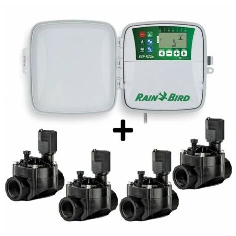 Systeme electrique ESP-RZXE4 Exterieur + 4 100 HV 1 Solenoid « 24V Rain Bird   Fonctionnalites de programmation souples qui le rendent ideal pour une variete d’applications, y compris les systemes d’irrigation residentiels et moyennes entreprises programmeur espaces verts.  La programmation par zone vous permet de programmer chaque vanne separement; est plus necessaire d’expliquer les « programmes » aux utilisateurs finaux, ce qui elimine pratiquement les appels de consultation.  Le grand ecran LCD affiche simultanement le calendrier pour chaque zone.    Caracteristiques programmeur   Son interface utilisateur simple est facile a expliquer et a toutes les caracteristiques du programmeur sur un ecran.  Montage avec deux vis.  grand ecran LCD avec navigation dans l’interface utilisateur simple.  logiciel de suppression de l’entree du capteur de temps.  demarrage vanne / pompe maĂ®tre du circuit.  memoire de programme non volatile (100 ans).  Peut etre programme avec la puissance de la batterie.  Non compatible avec le module wifi    caracteristiques de programmation   programmation basee zone qui vous permet d’assigner des programmes distincts pour chaque zone. (Peut etre affecte des temps d’execution, commencez heures et les jours d’arrosage specifique pour chaque zone).  Entrepreneur programmation rapide ™ automatiquement copie le debut et les jours d’arrosage dans la zone 1 a d’autres zones lors de la configuration initiale.  6 heures de debut independante par zone.  4 options d’arrosage jour par zone: jours de la semaine, ODD jours civils jours comptes du calendrier, programme cyclique (tous les 1 – 14 jours) . L’arrosage manuel toutes les zones ou une seule zone.    Caracteristiques   0 fois stations: a 199 min . desaisonnalisation; -90% a + 100%.  programme independant par secteur.  6 heures de debut independante par zone.  Les cycles du programme de jour comprend les jours de la semaine, les jours impairs, voire des jours et des dates cycliques.  Mode d’emploi Utilisation station individuelle.  Manuel En utilisant toutes les saisons.    electrique   230 V ± 10% AC, 50 Hz.  Sortie: 24 V AC 650 mA . Alimentation de secours: 2 piles AAA peut preserver l’heure et la date; la programmation est stockee dans une memoire non volatile.      Electrovanne 24V 100HV 1 « Rain Bird   ? Design compact, un rayon de braquage de 6,5 cm pour les installations dans des espaces restreints. ? Plusieurs options pour ouvrir les outils de valve (de cle, tournevis Phillips, tournevis plat). ? Le diaphragme excentrique permet une fermeture en douceur et de reduire les coups de belier.   Caracteristiques  . • facilite d’entretien – plusieurs connexions vis imperdables pour un entretien facile -. Acces rapide au diaphragme magnetique avec seulement quatre vis -. Emplacement de l’article diaphragme pour l’entretien fiable.  • Fiabilite -. Corps en polypropylene avec fibre de verre pour la force – Conception de flux inverse normalement ferme -. La reparation simple avec peu de pieces – diaphragme Buna-N pilote de 200 microns nettoyage automatique et le filtre a ressort en acier inoxydable . • Souplesse – travaux sur des applications de faible debit et de l’irrigation localisee lorsque le filtre RBY est installe a l’avant -. Purge externe pour purger le systeme et enlever les particules la salete lors de l’installation et la mise en service du systeme -. Purger interne pour une utilisation manuelle sans perte d’eau externe .  Caracteristiques   Pression: 1,0 a 10,3 bar . Debit: m3 0,05 a 6,82 / h; a moins de 0,68 m3 / h debit; ou pour toute application dans l’irrigation localisee, utiliser RBY-100-200MX le filtre installe a l’avant.  Temperature: temperature maximale de 43 ° C; temperature ambiante maximale de 52 ° C    Dimensions   Hauteur: 11,7 cm  Longueur: 11.2 cm  Largeur: 7,9 cm Â