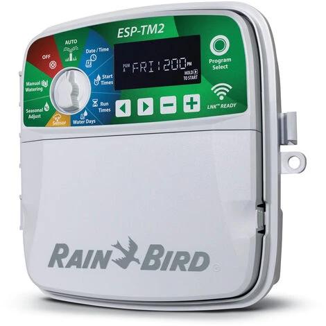 Le contrôleur d’irrigation ESP-TM2 est le choix idéal pour les installations résidentielles de base. Suite à la longue tradition de l’Utilisation Intelligente de l’eau (l’utilisation intelligente de l’eau) Rain Bird, ce contrôleur offre des fonctionnalités d’économie d’eau simple qui réellement utiliser. Grâce à la flexibilité offerte aux 3 programmes et 4 heures de démarrage par programme, vous pouvez personnaliser votre programme d’arrosage pour répondre aux besoins de votre jardin. L’ESP-TM2 a l’interface de programmation simple supplémentaire (programmation extrafácil) qui est utilisé dans une longévité intégrée du pilote.LNK comprennent le module WiFi qui permet la programmation, le fonctionnement et de réception à distance des alertes par application mobile Rain Bird.Station temps de fonctionnement: 1 minute à 6 heuresLes jours sans activité permanente (pour la programmation de jours impairs, même ou cyclique)Stockage et récupération Entrepreneur programmes par défaut et le commerce;Largeur: 20.1 cm (7,92 pouces). Taille: 20 cm (7,86 pouces). Profondeur: 9 cm (3,51 pouces)