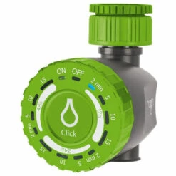 Cliquez est un simple programmeur de pluie et extrêmement facile à mettre en place l’irrigation qui pour contrôler le débit dans votre petit jardin, terrasse ou sur le balcon.Tout ce que vous avez à faire est de choisir la combinaison de la fréquence et la durée du cycle d’arrosage.Il est idéal pour placer un goutte à goutte ou micro-pulvérisation dans nos jardinières ou des pots sur la terrasse. Aussi est idéal pour l’arrosage des lignes de haies.Il suffit de choisir un temps de course de 2, 5, 10 et 15 minutes, et une fréquence d’irrigation allant de 1 à 1 toutes les 12 heures toutes les 48 heures.Alimenté par deux piles alcalines 1,5 V (AAA) (non inclus)La programmation se fait simplement en appuyant sur le centre. Nous avons commencé la sélection à la fois les minutes de fréquence.
