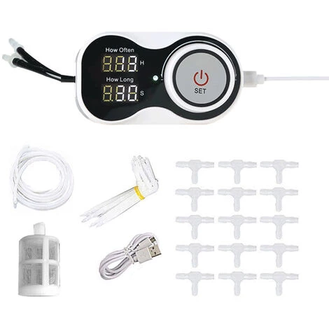 Facile à installer: coupez d’abord le tuyau sous ce que vous demandez pour la longueur, puis connectez avec un filtre en métal et placez le filtre en métal dans le réservoir d’eau, le connecter avec le goutteur, puis connectez le tuyau avec le goutteur et le corps principal d’entrée et de sortie – laissez, enfin en utilisant le cordon USB pour se connecter avec le corps principal et l’adaptateur 5V ou la banque d’alimentation.