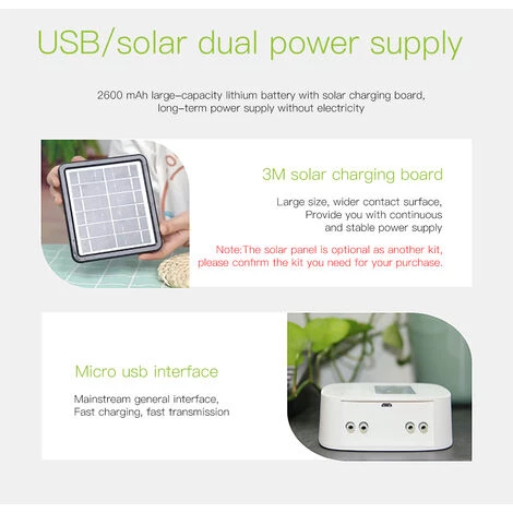 Conception à double alimentation USB et panneau solaire, panneau solaire de qualité et batterie au lithium rechargeable intégrée, grande capacité, n’a pas besoin de recharger la minuterie d’arrosage à plusieurs reprises ou de changer fréquemment la batterie.