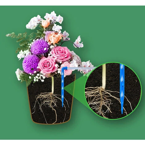 Arrosage des racines : Le goutteur peut être inséré directement dans le sol, ce qui est pratique pour injecter de l’eau directement dans les racines des plantes, avec une grande efficacité.