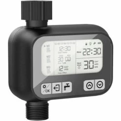 [Contrôle WIFI] Le minuteur intelligent dispose d’une application entièrement fonctionnelle pour les téléphones mobiles et vous donne le contrôle partout où vous en avez besoin. Programmez votre timer sur l’application. (Type 2) [3 modes indépendants]Trois groupes de modes indépendants Les clients peuvent choisir les modes appropriés en fonction de leurs propres besoins. [Économie d’eau]Arrêtez d’arroser dans le pluie. La vanne d’eau retarde automatiquement l’arrosage. La valeur est comprise entre 1 et 25 jours. [Sécurité enfant]La sécurité enfant est réglée pour empêcher les enfants d’utiliser l’équipement par erreur. [Haute qualité]La coque est fabriqué dans un matériau résistant aux UV pour une utilisation à long terme en extérieur, le produit ne se déformera pas, ne vieillira pas et ne se fissurera pas.Spécifications :
