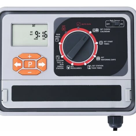 Vous êtes toujours inquiet de ne pas être en mesure d’arroser les plantes et les fleurs lorsque vous sortez, alors venez essayer ce contrôleur d’irrigation à l’eau intelligent, qui permettra d’économiser de temps et d’efforts. La minuterie d’arrosage peut contrôler 4, 6, 9 ou 11 vannes. Le contrôleur d’arrosage a 6 programmes d’arrosage et chaque programme a son heure de début, heure de fin et heure de fonctionnement. Le programme d’irrigation peut être fixé pour chaque jour de la semaine, avec une certaine heure de début et de fin. Le temps de fonctionnement peut être de 1 min à 12 heures 59 min que vous définissez. L’ordinateur d’arrosage de jardin est alimenté en courant alternatif et peut être facilement utilisé avec juste un bouton-poussoir et rotatif pour la sélection et la confirmation des données. Un capteur de pluie ou d’humidité (non inclus dans la livraison) est disponible pour éviter l’arrosage et maximiser les économies d’eau pendant les jours pluvieux ou lorsque le sol est trop humide. Une pile alcaline de 9 V (non incluse dans la livraison) est également nécessaire pour garder l’horloge numérique affichée à l’écran et la mémoire du paramètre précédent.