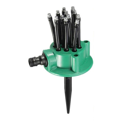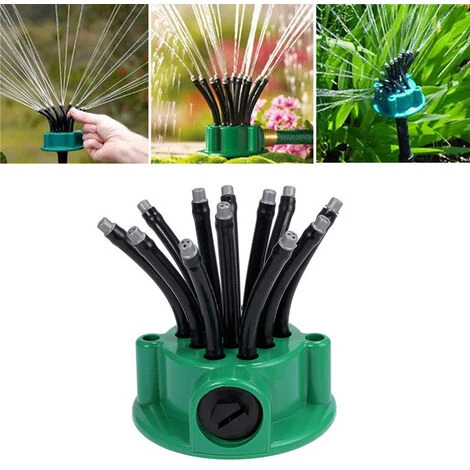 Arroseur de jardin au sol flexible avec 12 buses réglables indépendamment. Chaque tube flexible a des buses avec 3 trous séparés. Le fil intérieur peut être plié librement et n’est pas facile à réinitialiser.